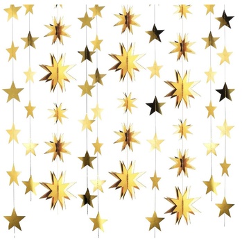 Guirnalda de pancartas navideñas, espejo de papel, octaedro estrellado, decoración de estrella colgante para fiesta de Navidad, productos de Navidad de Año Nuevo, 1,6 M